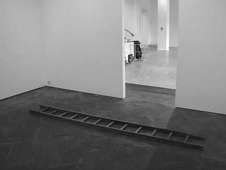 Eine Aktion von Andreas Slominski, der eine Holzleiter durch eine Tür trägt. Der Film konzentriert sich auf die Vor- und Nacharbeiten der Handwerker und bereitet so den Platz für die echten Gesichter, Handlungen und Fertigkeiten im Kunstgeschäft.