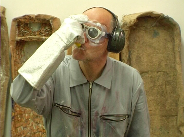 Der Videofilm dokumentiert eine Einzelausstellung des Düsseldorfer Bildhauers Harald Klingelhöller (*1954) im Van Abbemuseum Eindhoven 1990. Der Arbeitsweise des Künstlers folgend, wurde aus den Titeln der Skulpturen, der Beugung des Tätigkeitswortes „fallen“ und der Deklination der Worte „Anatomie“ und „Angst“ ein akustisches Gewebe erstellt, an das die dokumentarischen Aufnahmen der Ausstellung geknüpft sind. Beim Hören entsteht auf diese Weise ein Sprachraum, dessen assoziative Bildkraft neben den Skulpturen existiert, ohne sie zu erklären.
